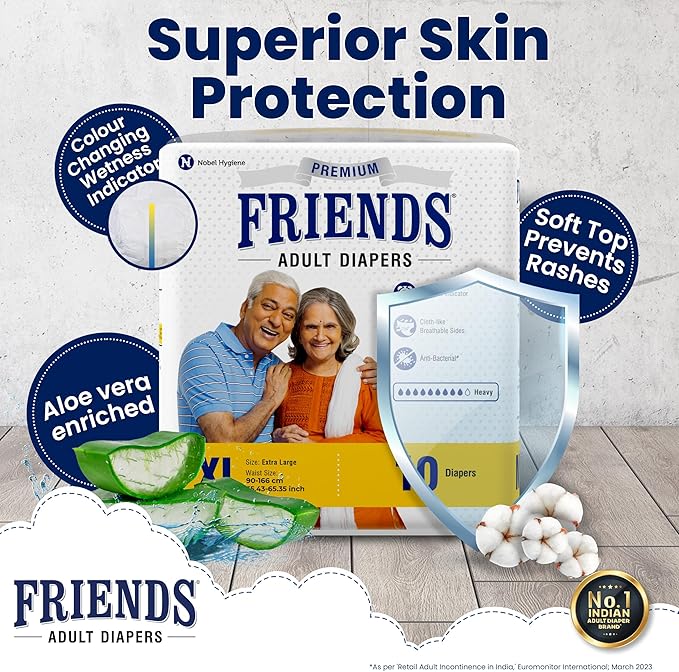 Friends Premium Adult Diapers Tape Style deliver superior absorbency and discretion for adults managing incontinence with confidence. These tape-fastened diapers combine high-performance materials with a secure, adjustable closure system that accommodates varying body shapes and sizes. The multi-layer core technology rapidly locks away moisture while maintaining skin breathability, reducing the risk of irritation and dermatological complications. Engineered for extended wear capacity, they provide reliable protection during both active and restful periods. The premium construction ensures dignity and comfort, making them an excellent choice for healthcare facilities, home care settings, and independent living situations.
